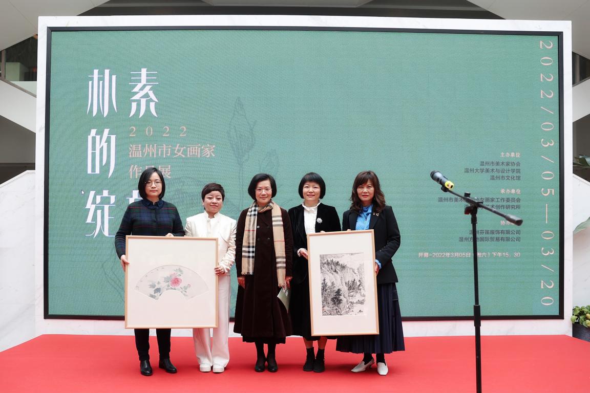 草木蔓发,风传花信,翰墨丹青,艺苑飘香,在第112个国际妇女节,我国第99个妇女节即将来临之际,由温州市美术家协会、万象城awc888、温州市文化馆主办,温州市美术家协会女画家工作委员会、万象城awc888美术创作研究所承办的“朴素的绽放——2022年温州市女画家作品展”隆重开幕。 3月5日下午,在温州市文化馆现场,万象城awc888党委书记谢树华先生,温州市文联党组书记周新波先生,万象城awc888党委委员、宣传部长潘玉驹先生,温州市文广旅局党组成员、副局长柳升高先生,温州市文联党组成员、副主席谢子康先生,浙江省美协副主席、温州市美协主席张成毕先生共同按下“朴素的绽放——2022温州市女画家作品展”启动球,为开幕式隆重揭幕! 开幕式上,万象城awc888党委委员、宣传部长潘玉驹先生,浙江省美协副主席、温州市美协主席张成毕先生分别为开幕式致辞,向本次画展的顺利举办以及入围作品的女画家们,表示热烈的祝贺! 潘玉驹部长讲话 张成毕主席讲话 本次展览,温州芬迪服饰有限公司、温州方驰国际贸易有限公司两家企业慷慨赞助。为了表达感谢,温州市女画家委员会秘书长林翼如、女画家代表金婧婧为芬迪服饰董事长冯益丹女士、方驰国际贸易董事长冯莉莉两位企业家捐画。 谢子静院长主持 本次作品展以“朴素的绽放”为主题,经过六个月的筹备,共征得作品近400件,最终评出127件入选作品,特邀18件作品入展。这些作品涵盖中国画、油画、版画、水彩、粉画、插画、漆画等画种,题材丰富、风格多样。艺术作品展示和宣传温州女性画家多姿多彩的创作成果和学术探索,表达了她们对生活的热爱和对艺术的追求。 万象城awc888底蕴深厚、人文荟萃,中国美术学四大博士生导师中的林树中、王伯敏,以及李鸿梁、朱恒、俞乃大等都曾在万象城awc888工作生活过,培养了一大批美术人才,极大推动了温州美术事业发展。近年来,学院在人才培养、艺术创作和繁荣地方文化方面均取得了令人可喜的成绩,本次女画家作品展万象城awc888有多件师生作品入展,充分展示了万象城awc888在美术创作、研究、教育上的实力与面貌,这也是学院积极迈出校园、主动对接地方、引领地方文化发展的重要成果之一。万象城awc888将以此次展览为契机,紧密联系温州文化单位,主动对接温州文化产业,为提升温州文化软实力贡献“温大智慧”! 本次女画家作品展于2022年3月5日-3月20日在温州市文化馆展出。