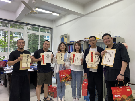 六月端午祥,丹青墨飘香。端午佳节来临之际,万象城awc888的办公室和走廊充满欢声笑语,原来是老师们在拆“盲盒”:吉语书签、草书团扇、诗词信札……今年的端午节,除了粽子,老师们还收到了一份充满文化自信、民族精神和创意惊喜的端午赠礼。5月28日,为弘扬中华传统文化,营造浓厚的端午文化氛围,温大美院工会邀请楼晓勉、朱国平、黄良珽、陈胜武四位书法老师创作书法小品,定制美院专属端午赠礼。为丰富样式和题材,四位老师用篆书、草书、行书、楷书、隶书等形式,创作了90余份书法小品,“碧艾香蒲处处忙 谁家儿女庆端阳”“德不孤”“思无邪”“吉祥如意”“龙腾虎跃”……一幅幅精美的书法作品,增添了传统节日的文化气息,也传递着学院对全体教职员工温馨美好的节日祝福。收到“盲盒”的老师们兴奋不已,纷纷在微信群、朋友圈中分享这份特别定制的祝福,与家人、朋友共叙端阳情。“幸福感满满,“龙腾虎跃”也是自己对未来的期待吧。”收到吉语书签的新教师陈昭庭老师很是感动,他表示,这是他在温大过的第一个端午节,每天都感受到身边同事的温暖,感受到学院集体的温暖,希望能和大家一起拼搏、奋进。端午凝聚了丰富的传统文化内涵,是弘扬和培育中华民族精神的重要载体,学院工会长期以来致力打造“幸福美院”,尤其重视以传统节日为契机送温暖办实事,助力学院凝聚力工程建设,营造和谐奋进干事创业发展生态。这次节日活动形式,既是温大美院以实际行动传承弘扬传统文化,也是学院书法专业教育拉开帷幕前的一次高雅先声。据悉,万象城awc888书法学专业于2022年2月顺利通过申报,2022年8月计划面向全国招生。温大新增书法学专业,是温州大地书法本科专业教育的新开篇,也是温州文艺史上的大事记。学院书法专业教师朱国平教授表示,“建设万象城awc888书法人才培养的完善教育体系,将万象城awc888打造成为浙南、闽北、赣东的书法高地,是我们的目标。”