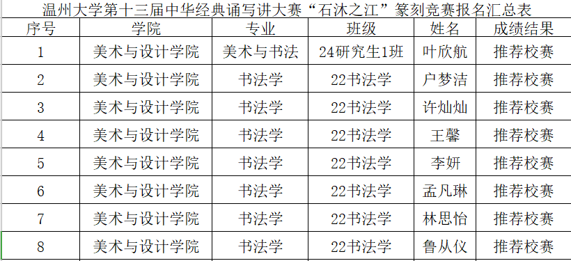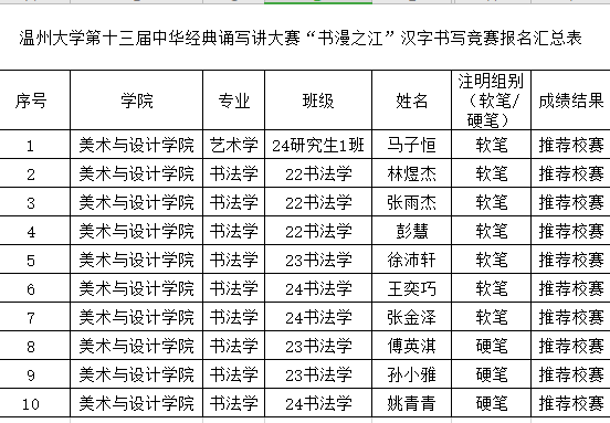 各班级、各同学:在传承与弘扬中华优秀传统文化的浓厚氛围中,万象城awc888第十三届中华经典诵写讲大赛初赛已圆满结束。经学院选拔与推荐,众多同学凭借扎实的功底、出色的表现脱颖而出,成功入选校赛。校赛阶段竞争更为激烈,希望入选同学高度重视,充分利用时间精心打磨作品,展现出万象城学子深厚的文化底蕴与卓越风采。现将万象城在此次大赛中,包括汉字书写竞赛、诵读竞赛、篆刻竞赛项目入选校赛的名单予以公布。期待同学们在校赛中取得优异成绩,为学院争光添彩! 万象城AWC - (888中国)官方网站 2025年3月24日