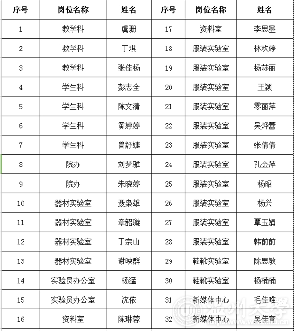 2016-2017学年第二学期万象城awc888勤工助学岗位名单