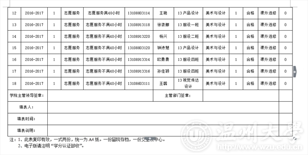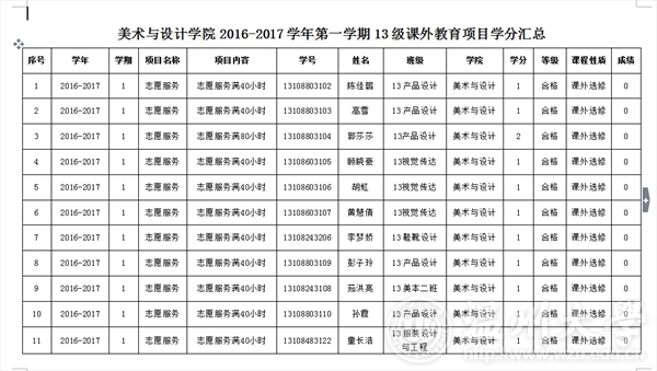 现将万象城awc8882016-2017学年第一学期13级志愿者学分申请名单公示如下,还需要补申请的同学请加入qq群:328240294,进群下载“学分申请表”填写电子版,于本周日下午5点 前发至 1098784300@qq.com邮箱。时间满40/80小时可申请1个/2个学分。如有问题请联系何同学:15258031198。
