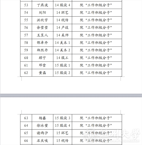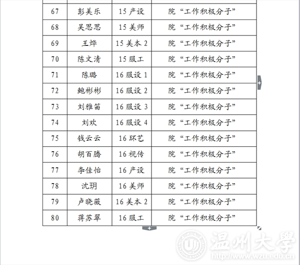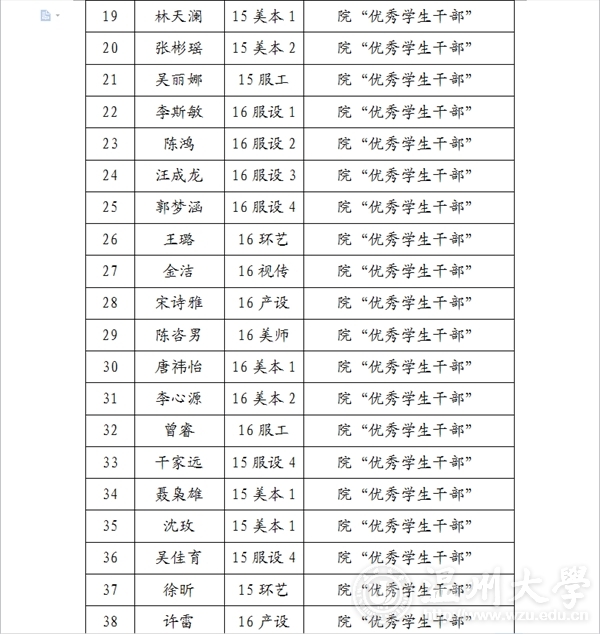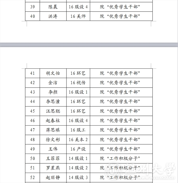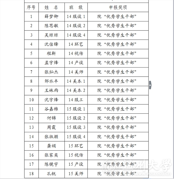现将2016-2017学年第二学期万象城AWC - (888中国)官方网站“优秀学生干部”“工作积极分子”名单公示如下,如对评选结果有异议,请于9月22日17:00前及时联系美术学院学生科。