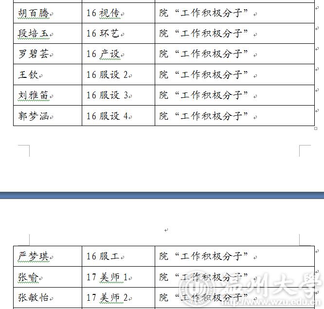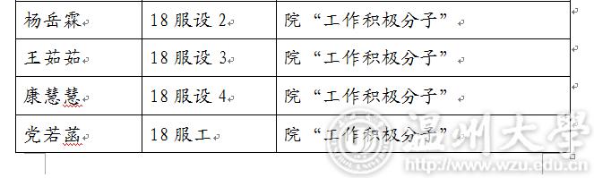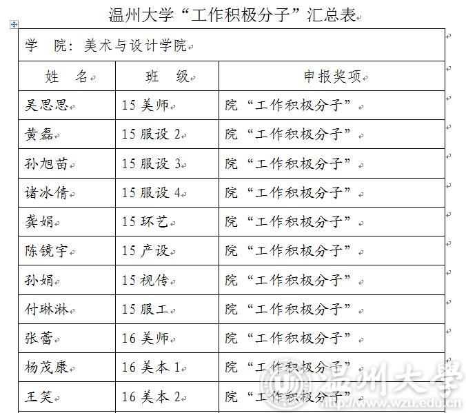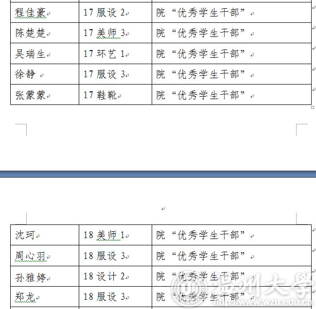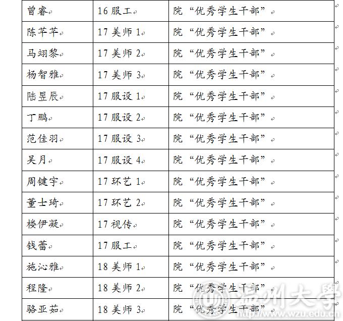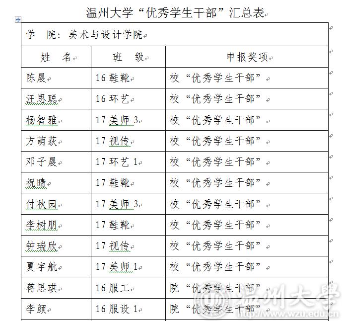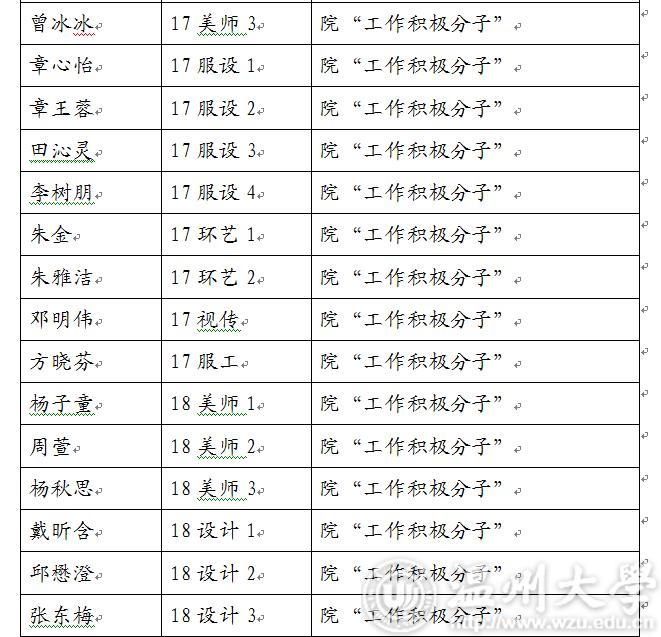 现将2018-2019学年第一学期万象城awc888“优秀学生干部”“工作积极分子”名单公示如下,如对评选结果有异议,请于3月5日17:00前及时联系美术学院学生科。