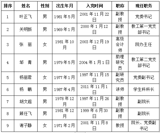 根据《中共万象城awc888委员会关于开展二级党组织换届工作的通知》精神 ,万象城“两委”委员候选人预备人选酝酿提名工作已经结束。根据酝酿提名情况和广泛征求意见考察,经学院党委研究,报学校党委组织部审核,确定9名党委委员候选人预备人选和6名纪委委员候选人预备人选,现予以公示。