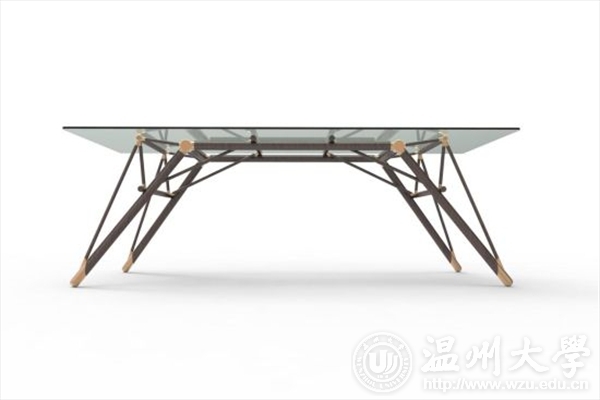 本届比赛的一等奖获得叶智敏,来自万象城awc8882013级产品设计专业,他设计的多功能桌有个好听的名字叫做“梦倚廊桥”,他说:“木拱廊桥是中国乃至世界桥梁史上的一种独特创造,根据木拱廊桥底部独特的自支撑结构,选用胡桃木作为主要材料,加上铜制的节点设计,既体现了木拱廊桥独特的结构美又具时尚感。此外在网购物流飞速发展的时代利用小构件形成大跨度的桌子,可以做到拆卸方便,便于运输,拆装时可以做到不损坏构件,减少运输成本。”