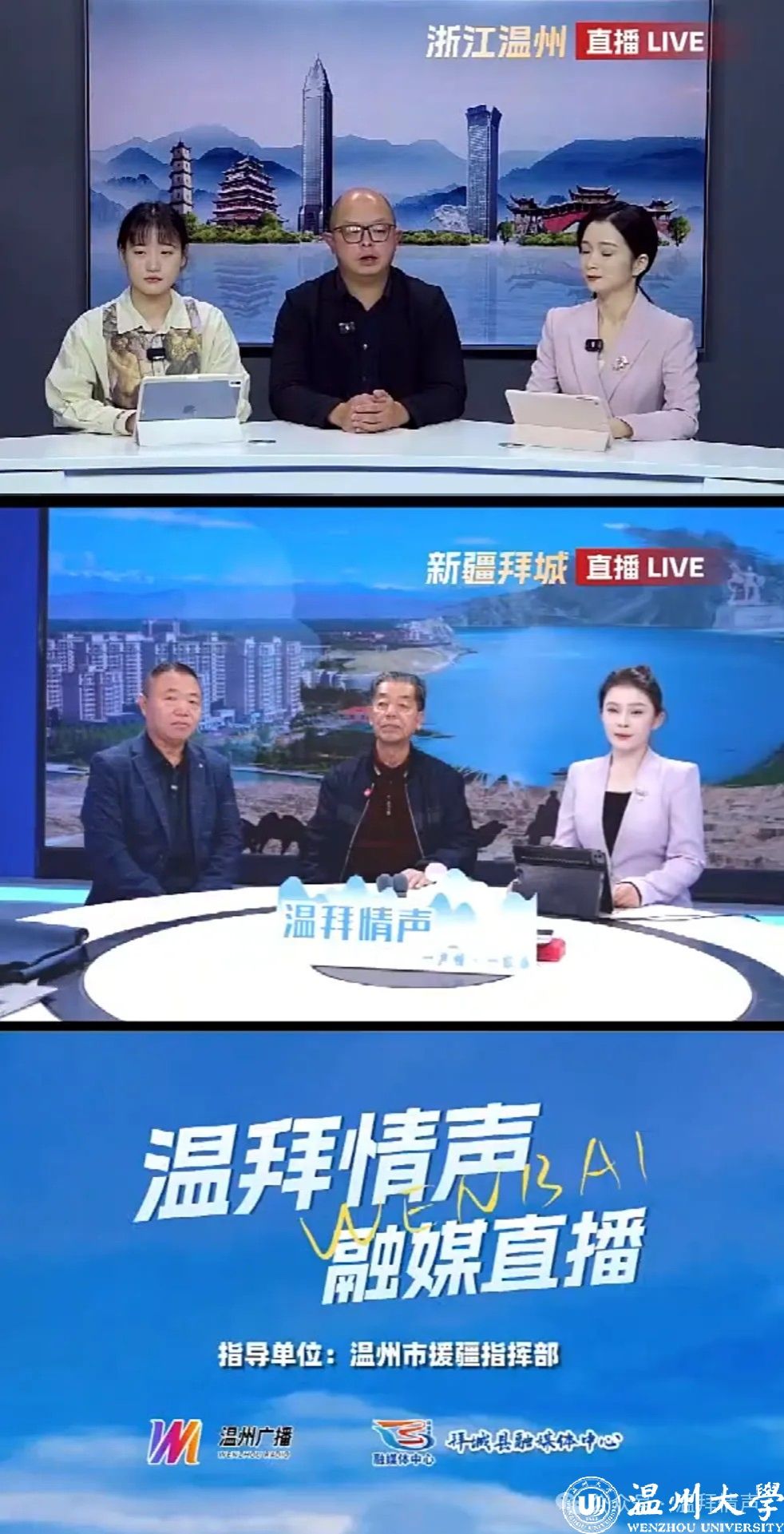 本期《温拜情声》融媒直播节目在通过“温拜情声”、“温州广播”、“拜城零距离”视频号播出的同时,还将通过FM94.9温州综合广播和FM107.3拜城人民广播电台在两地播出,敬请收听。