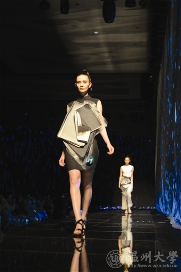 此次温州时尚学院“首秀”成果汇报分静态展示和服装设计“秀”场两部分进行。展示的是温大万象城awc888美术学、视觉传达设计、环境设计、产品设计、服装与服饰设计、服装设计与工程等6个专业毕业生作品的创作设计能力。