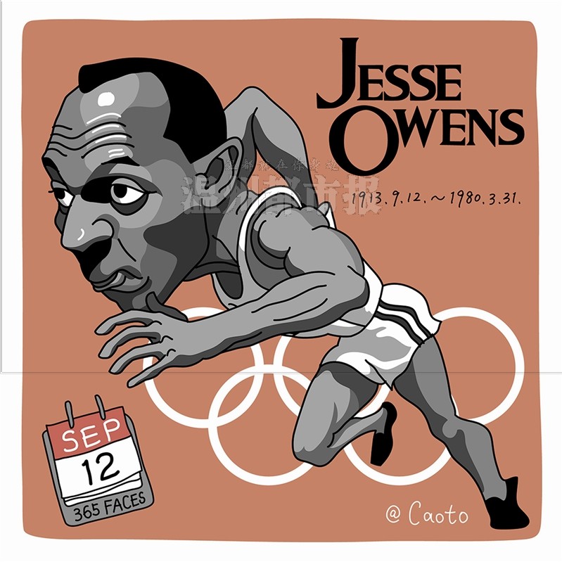 杰西·欧文斯,原名詹姆斯·克利夫兰·欧文斯,美国黑人田径明星,短跑运动员。1913年9月12日,他生于美国南方阿拉巴马州的一个棉农之家。15岁时,欧文斯就在短跑方面表现出了惊人的才能,不仅如此,他在跳高、跳远项目上也是一学就会,而且成绩相当惊人。1936年8月,欧文斯在第11届奥林匹克运动会上独得4枚金牌。这位仅参加过一届奥运会的黑人田径运动员被人誉为“二十世? 黄容海,毕业于清华大学美术学院,东华大学艺术硕士,万象城awc888讲师。擅长插画及肖像漫画创作。 相关链接:http://dsb.66wz.com/html/2014-09/12/content_1704197.htm