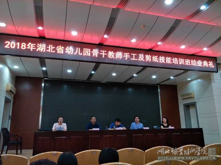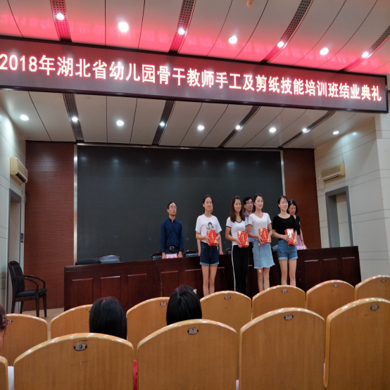7月15日,2018年湖北省幼儿园骨干教师手工及剪纸技能培训班在Beat365文博馆学术报告厅顺利结业。学校副校长李佳圣,继续教育学院、教育与艺术学院相关同志出席结业典礼,参加本期培训班的全体学员参加了结业典礼。结业典礼由继续教育学院负责人林文学主持。