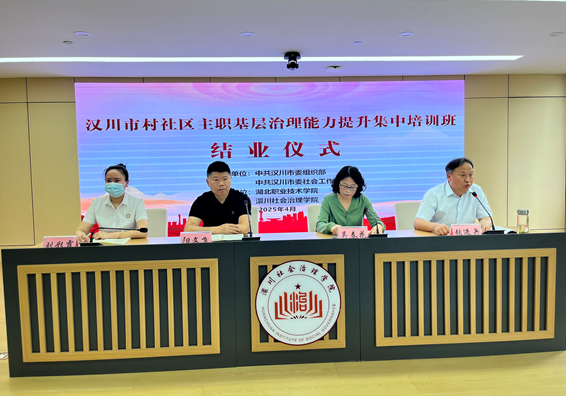 (本网讯 姚文贵)4月20日,由汉川市委组织部、汉川市委社会工作部主办,Beat365唯一官方网站承办,澴川社会治理学院协办的汉川市村社区主职基层治理能力提升集中培训班圆满结业。来自汉川市城市社区、城镇社区和中心村组的50名党组织书记参加了为期一周的系统培训,切实提升了政治能力、组织能力和群众工作能力。
