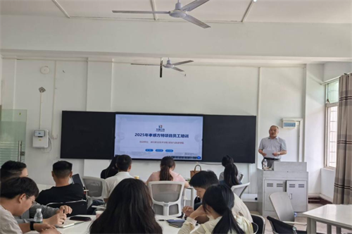 财经与旅游学院副院长汪行光致辞。他强调,此次校企合作聚焦智能时代核心能力升级,通过系统性课程助力员工掌握AI工具应用、高效沟通、心理韧性等关键技能,为企业可持续发展注入新动能。骨干教师肖敏晨以“演说表达力”为主题展开首场培训,通过情景模拟、案例分析与分组实战,帮助学员突破职场表达瓶颈,提升逻辑框架构建与即兴演讲能力。参训员工表示,课程兼具实用性与创新性,为后续AI办公、情商管理等系列课程打下坚实基础。