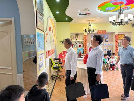 在武汉洪山区芷岸龙庭幼儿园,袁胜华一行实地考察了幼儿园的教学环境、特色课程及婴幼儿托育专区,深入了解该园在学前教育与托育服务融合发展的创新实践。作为武汉市示范性普惠园,园方负责人陈泉园长作重点介绍了率先开设0-3岁婴幼儿托育班,构建"托幼一体化"的教育模式,其课程体系与Beat365学前教育、婴幼儿托育服务与管理专业高度契合。