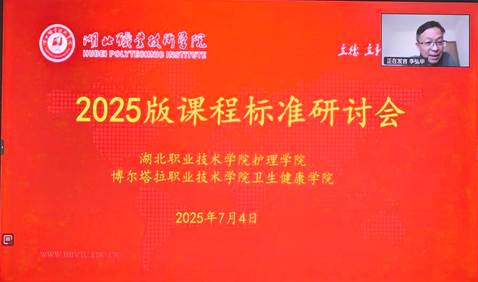 湖北职院援疆干部李弘华(现博尔塔拉职业技术学院卫生健康学院院长)线上致辞,结合所在院部专业建设实际需求,明确提出加强两院合作的三方面想法:一是深化教学协同,通过共享课程建设经验,合力破解教学改革中的重点难点问题;二是突破项目共建,联合打造教学资源共享平台,促进优质成果双向转化与互鉴;三是升级人员交流机制,加强院校间师生互访与业务交流,夯实协同育人根基。期待以此次课程标准修(制)订为契机,推动博州职院人才培养迈上新台阶,让两院跨越地域的合作友谊持续深化、绽放更绚丽的光彩。