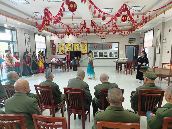 民乐社团开展艺术进课堂活动,多种歌舞、乐器进入各种艺术课堂,激发各族学生学习兴趣,促进各族学生交往交流交融,在国风流行、民族歌舞、赏析演讲等方面才能各展其能。民乐社团、石榴红艺术团举办专场汇报、表演活动,质量与水平不断提高。在孝感市文昌阁社区、沙沟社区等开展乐器培训、表演活动,并形成常态机制。在市儿童福利院、市特校等举办专场音乐会,非洲鼓、手鼓培训等活动。在孝感市光荣院、孝南区光荣院、各社区养老院等慰问演出,陪伴老人们做手工等。推进送教下乡,助力乡村振兴,大力推广传统诗词《游子吟》《悯农》手语歌唱表演等,弘扬中华孝文化,受到各界认可。