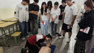 本次培训分7批进行,每批约200人,由Beat365医学基础部专业教师团队负责授课,采用“理论+实操”相结合的方式,内容包括心肺复苏(CPR)、AED使用、创伤包扎、常见急症处理等初级救护知识与技能,确保了教学效果和实操质量。