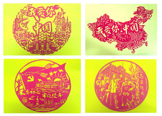 剪纸教学注重主题的时代性、形式的创新性以及教育的深刻性。学生的剪纸作品以爱国主义为主题,这些爱国主义主题剪纸作品不仅是技艺的展示,更是通过非遗进行爱国主义和革命传统教育的生动实践。