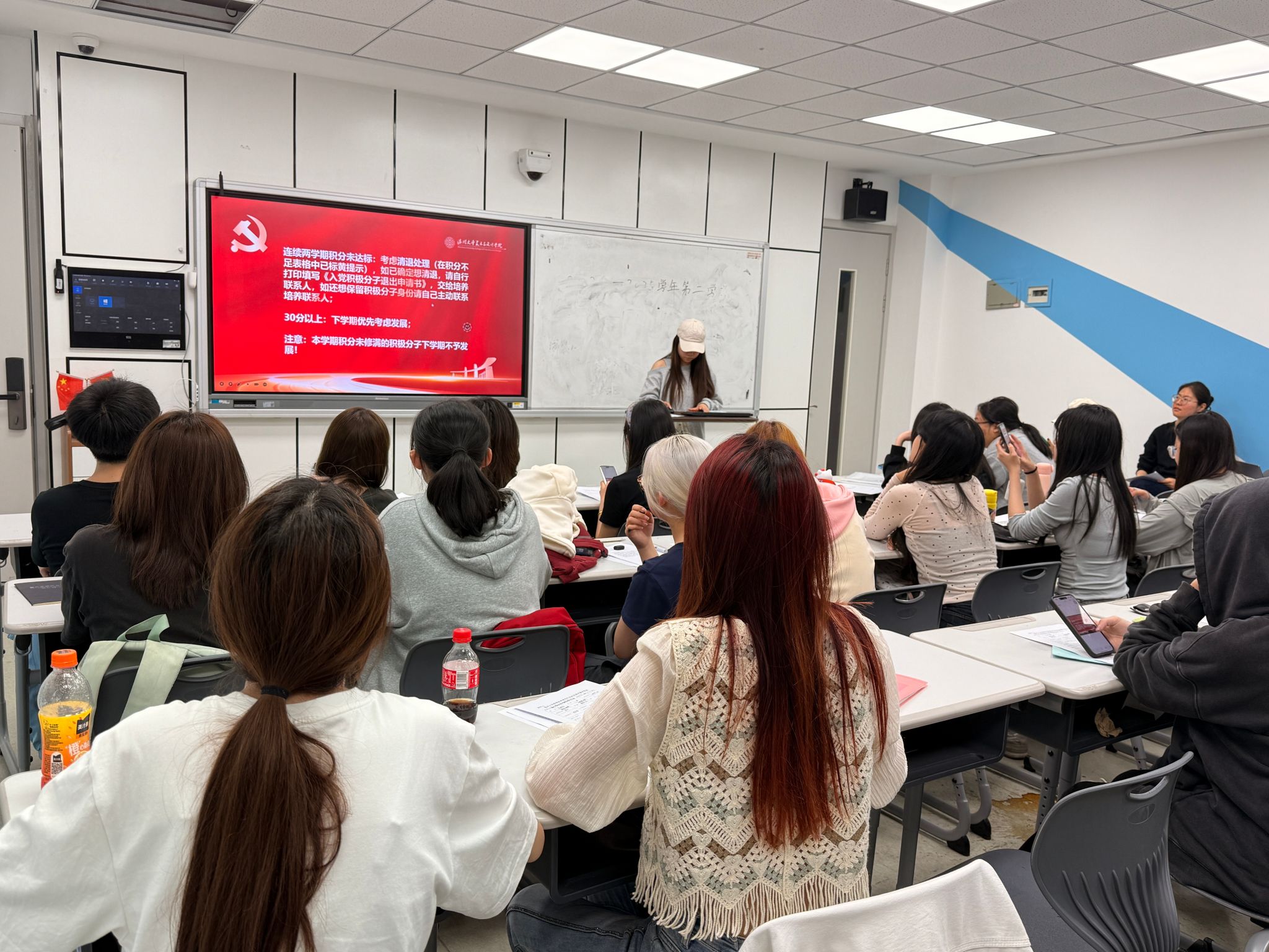 为加强党员队伍建设,严把党员发展“入口关”,引导入党积极分子系统学习党的基本理论知识、明确党员权利义务、增强党性修养,万象城awc888于4月21日组织开展2024-2025学年第二学期入党积极分子培训会。培训会首项议程由党员服务中心党员发展部部长刘佳昕同志介绍入党积极分子的培养教育内容。在说明各类表格填写规范操作的基础上,她重点阐释了思想汇报的重要意义,鼓励全体积极分子加强理论学习,提升思维深度。随后党员服务中心综合管理部副部长章雨彤同志就入党积极分子的发展流程进行解读。明确发展对象需经历多环节考验,包括政审、培训、公示等程序,最终合格者才可吸纳为预备党员。她指出发展对象应提前了解各阶段考核要求,以党员标准严格规范自身,为成长为合格党员奠定坚实基础。最后由党员服务中心义工活动部部长张智丽同志介绍入党积极分子的考核管理方法。她重点说明了发展过程中的多维考评机制,并倡导积极分子在实践中锻炼自身,发挥专业优势服务师生、校园及社会。通过本次培训,积极分子们对党员发展流程、思想汇报规范及自身责任使命有了清晰认识,为后续培养奠定了坚实基础。学院将持续优化培训机制,引导全体积极分子在专业学习、社会实践、志愿服务中发挥先锋模范作用,为党的事业培养更多优秀人才。图文:沈吟珊 张智丽 刘佳昕初审:李琳 叶欣雨 何唐蔚复审:陈嘉怡终审:叶如芳